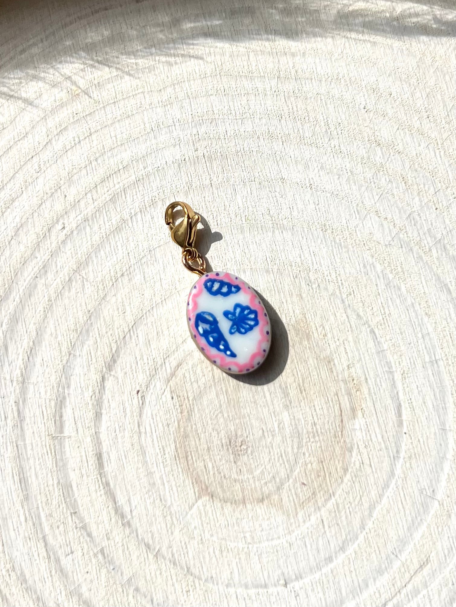 Medium size hand pIainted charms with eyelet hook and lobster clasp for easy adding and removal to necklace chains or bracelets.