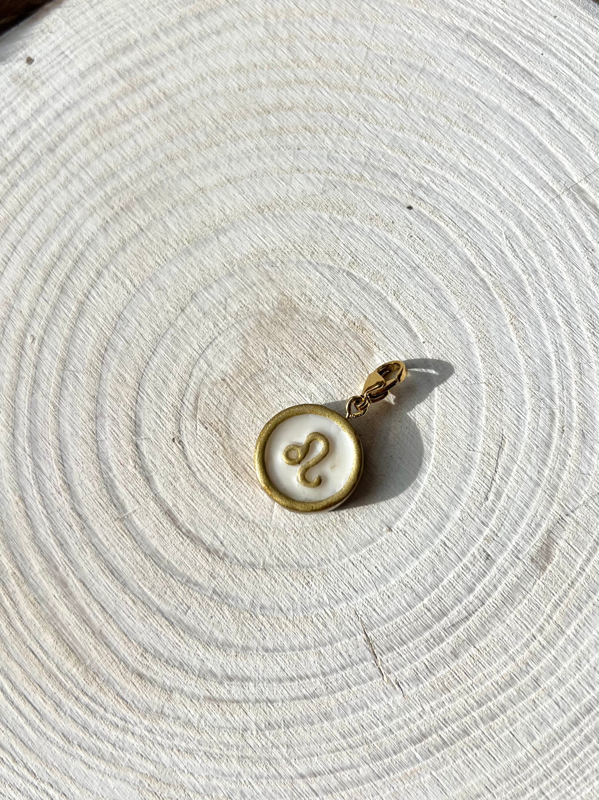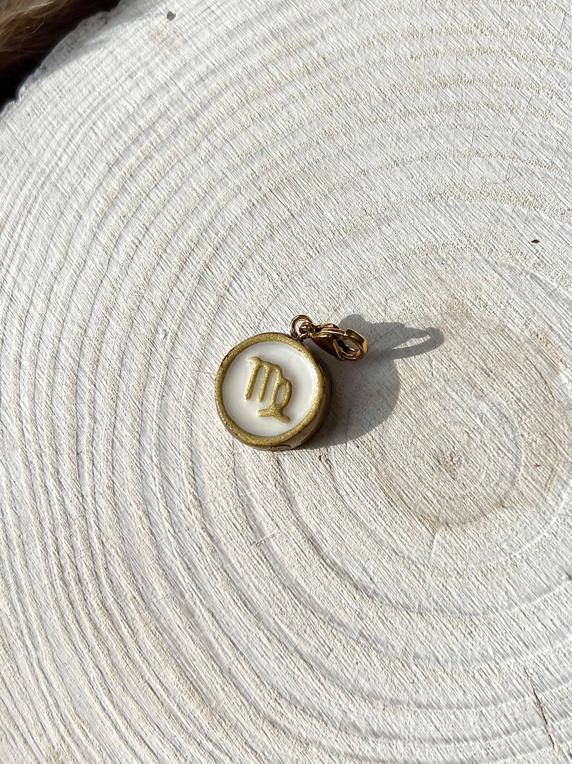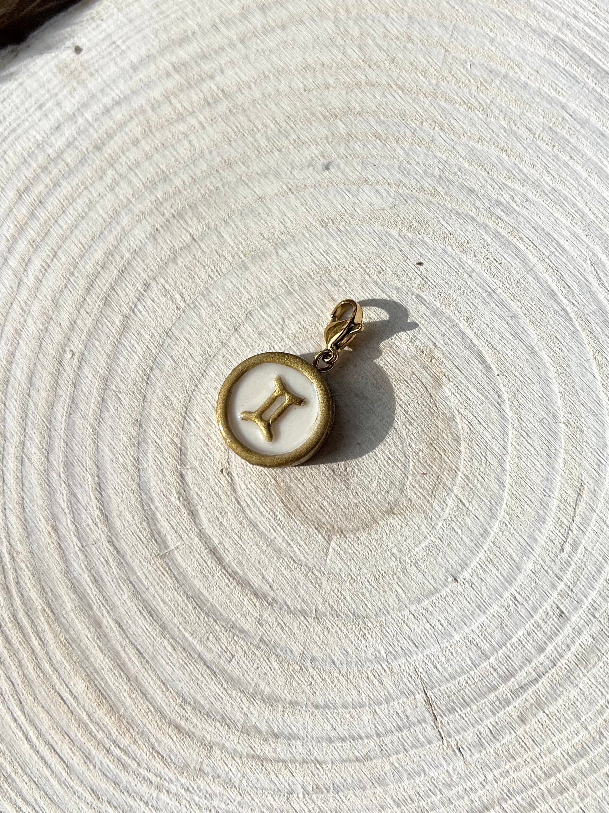 Horoscope - Zodiac sign double-sided charms wiht gold signs and an a porcelain white like background.