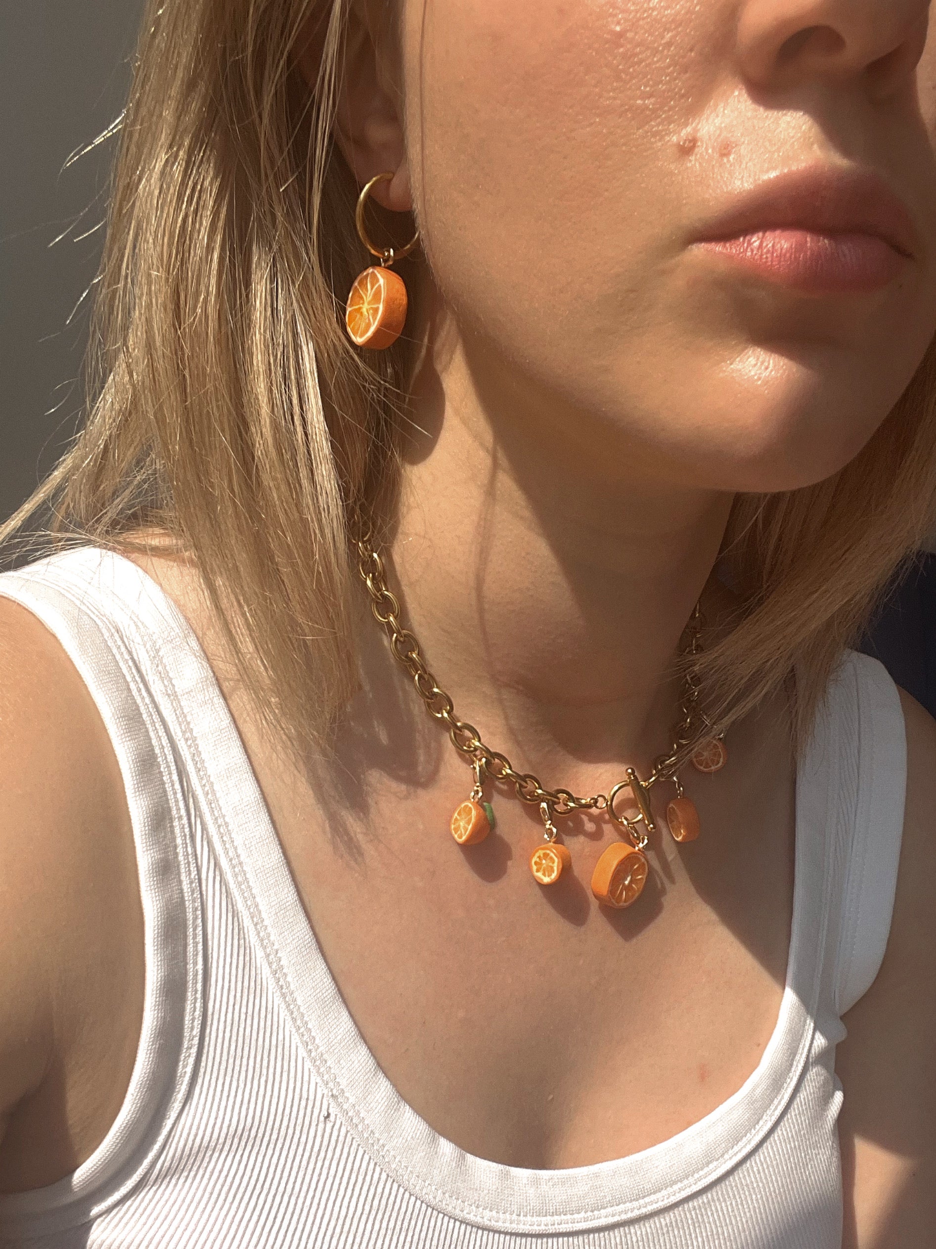 5 Charm quintet on the necklace: 1 medium orange slice, 2 small orange slice, 2 small orange half. The price already includes the multibuy charm discount (buy 4 get 1 free).