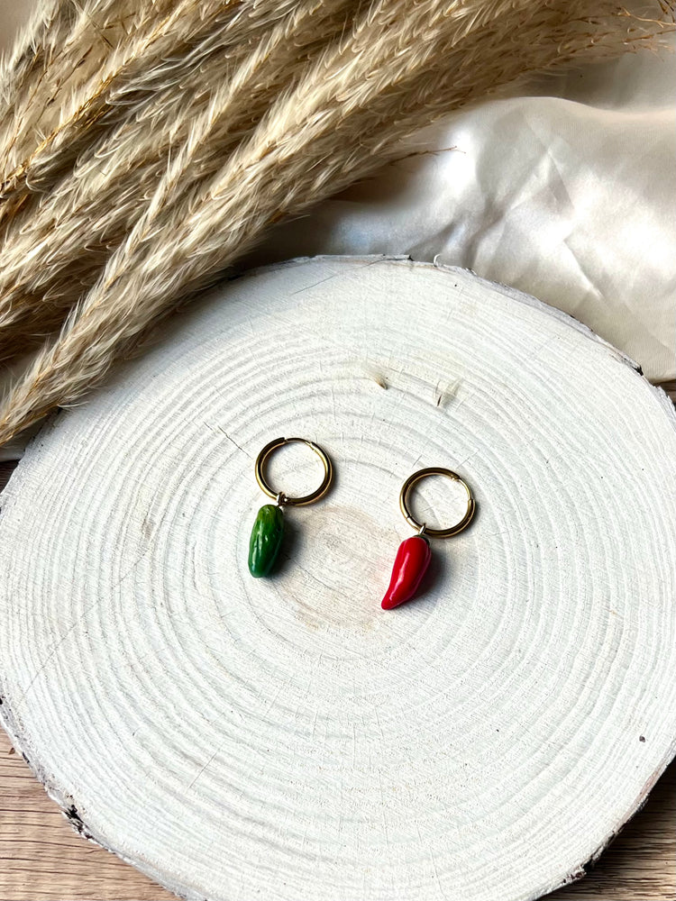 Pickles/Chillies earrings on 18K gold hoop (19mm)