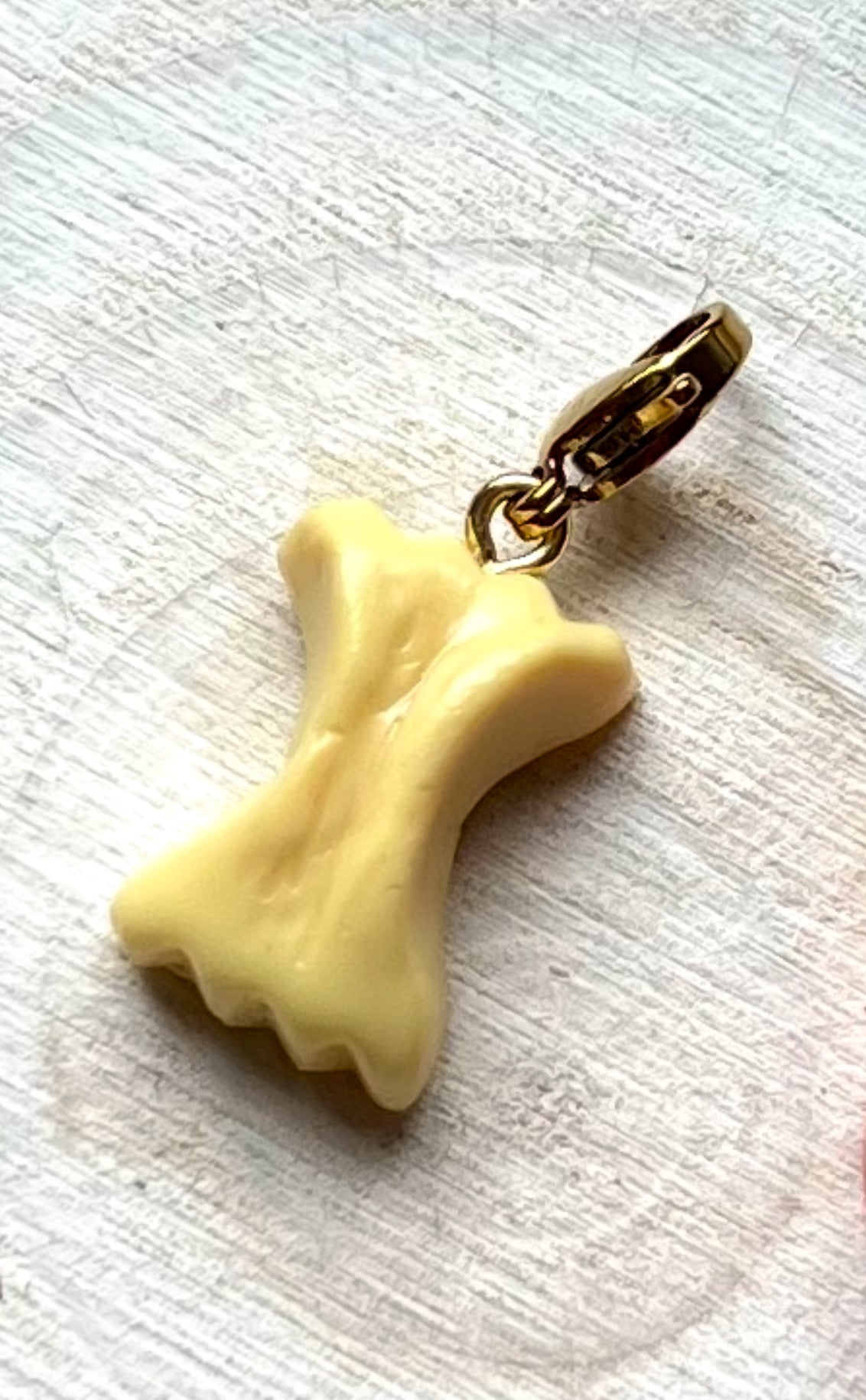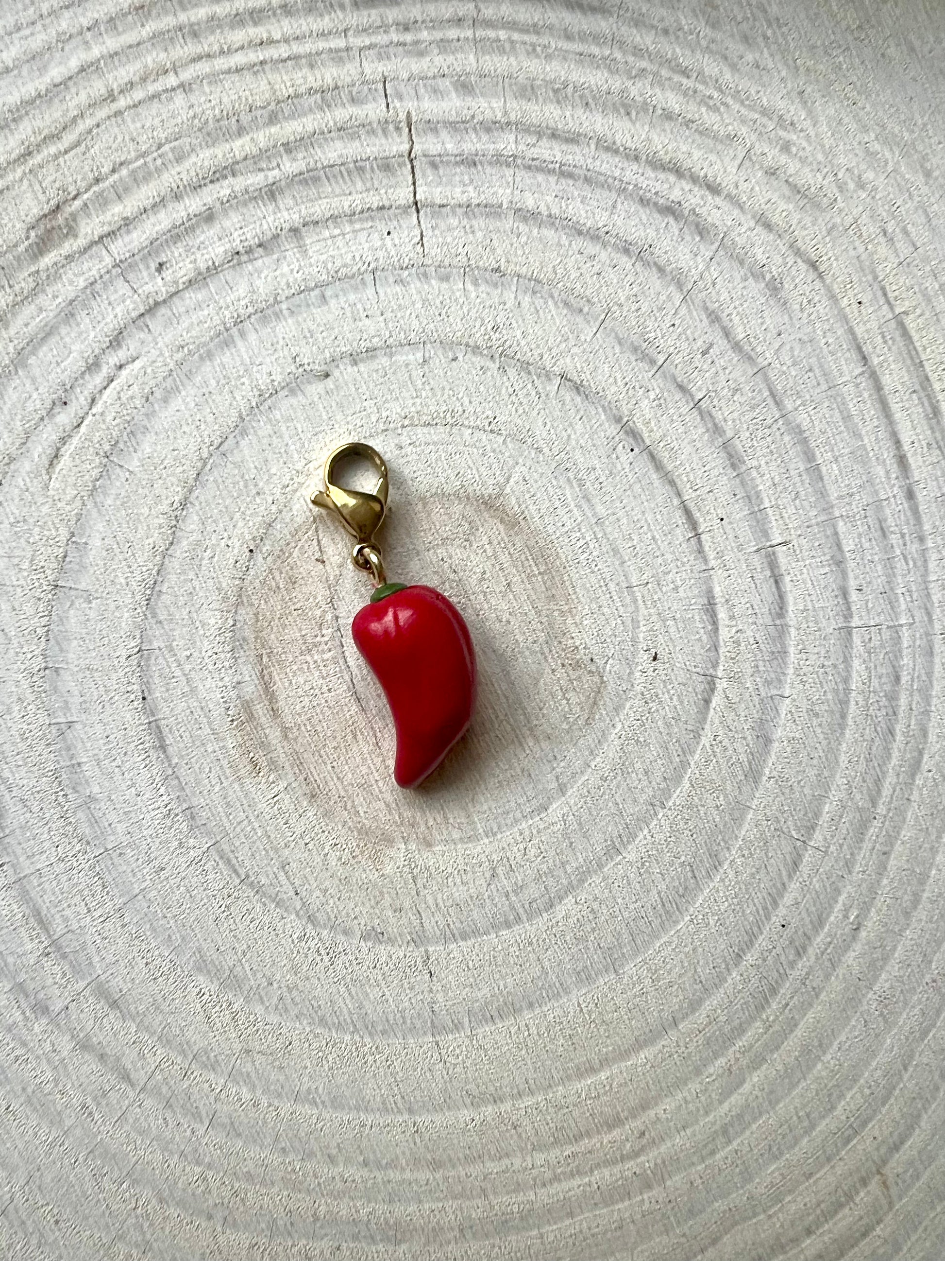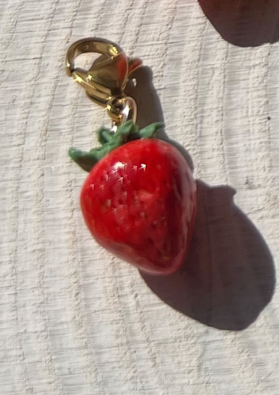 Small fruity charms with eyelet hook and lobster clasp for easy adding and removal to necklace chains or bracelets.